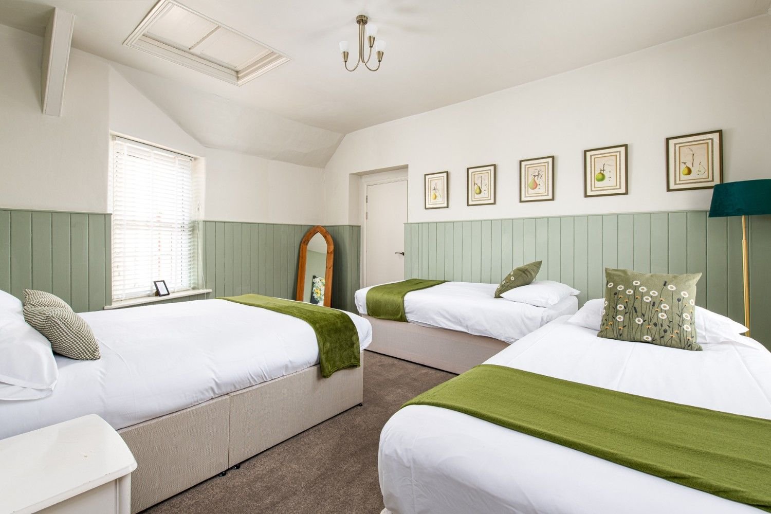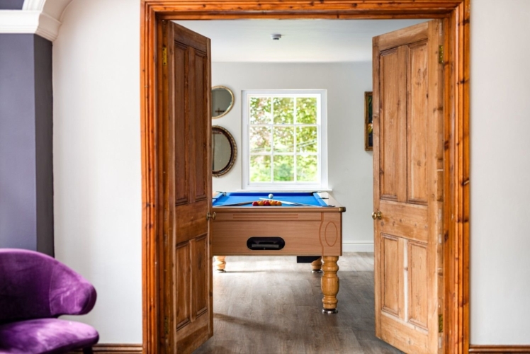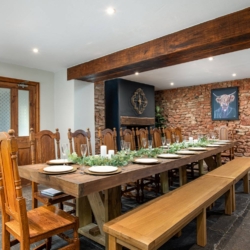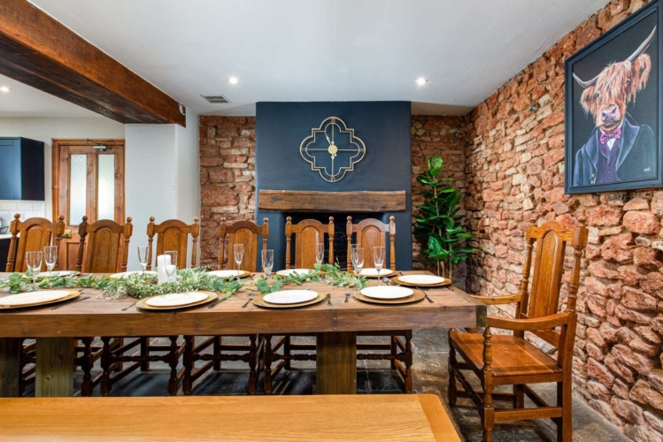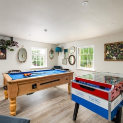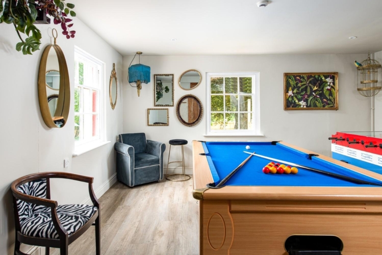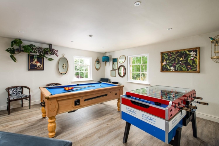 Blending historic elegance with contemporary comfort, the manor features spacious living areas, two games rooms, two fully enclosed gardens, and two hot tubs, providing ample room for guests to relax and enjoy time together. Generous outdoor furniture and garden space make al fresco dining and summer gatherings effortless.