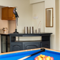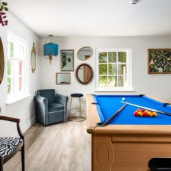 Entertainment options are plentiful. Indoors, guests will find spaces for games, conversation, and relaxation. Outdoors, the private gardens offer room to wander, dine al fresco, or simply enjoy the fresh air. The combination of indoor comfort and outdoor space creates a balanced environment where guests can unwind and reconnect.