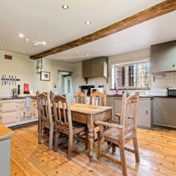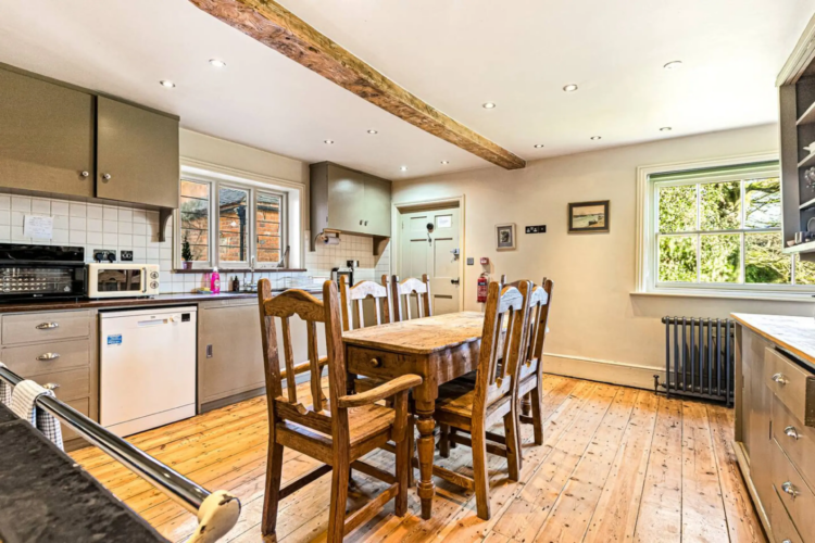 At the centre of the house, the kitchen and dining spaces are set up with groups in mind. The kitchen is fully equipped for everything from casual breakfasts to larger, catered meals, while the dining area brings everyone together around one table. There’s a natural flow between indoor and outdoor spaces too, making it just as appealing to dine outside when the weather allows.