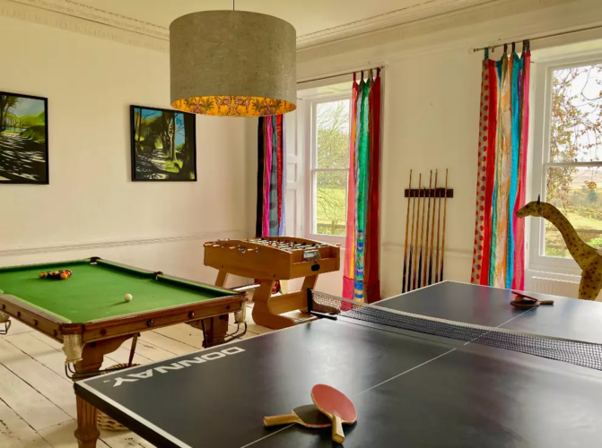 Set amidst private grounds in Dartmoor National Park, the venue offers extensive outdoor and indoor leisure: garden furniture with views, fire-pit, hot-tub, outdoor kitchen with grill & pizza oven, a games-room (pool table, foosball, darts, table-tennis), and a sauna for relaxation.