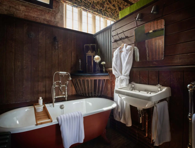Stable Manor accommodates up to 18 guests across 12 uniquely styled bedrooms, many with king-sized beds and individual décor. Suites feature freestanding baths and elegant finishes; one ground-floor accessible suite is also available.