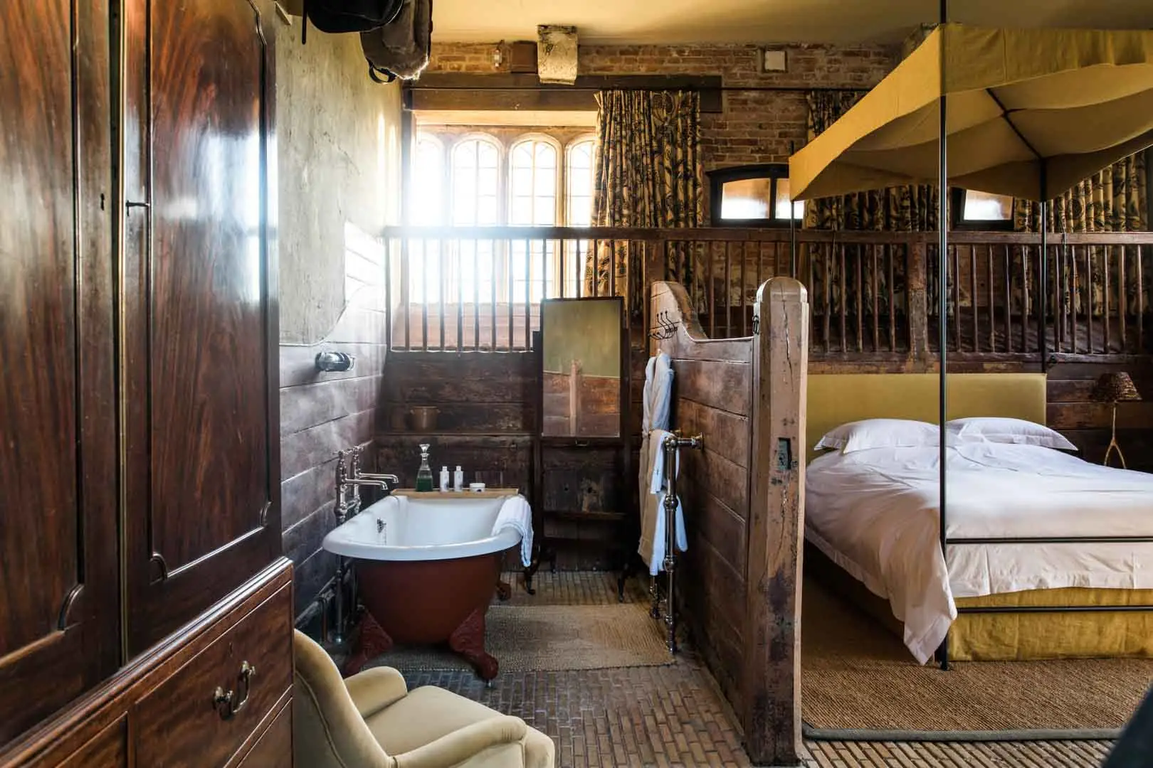 Stable Manor accommodates up to 18 guests across 12 uniquely styled bedrooms, many with king-sized beds and individual décor. Suites feature freestanding baths and elegant finishes; one ground-floor accessible suite is also available.